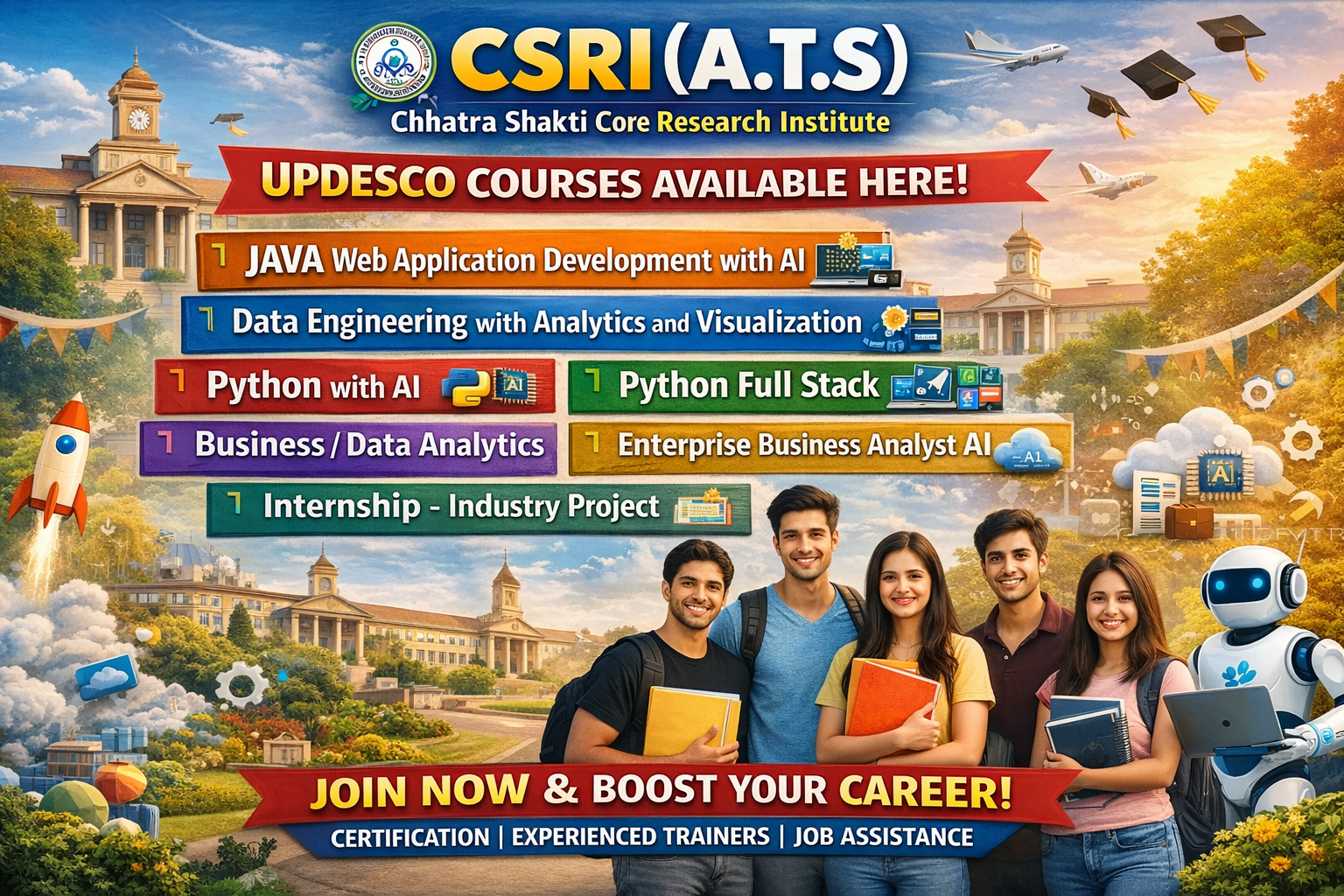 The courses at UPDESCO help its students acquire professional, relevant computer skills and strong practical knowledge. These courses are framed according to the prevailing market demand and offer government-recognized certification that would help the students bring betterment to their job prospects and ensure far better job and career opportunities.